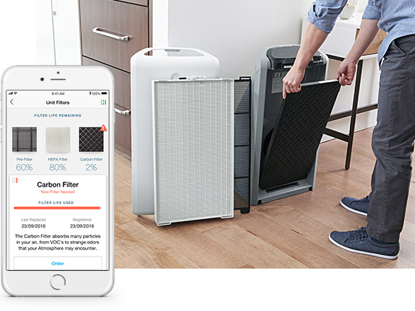 Connect your unit to WiFi or Bluetooth and use your smartphone or tablet as a remote. Turn your unit on and off with just your voice! You can also check the room’s current air quality, and view a 7-day air quality history. The app also reminds you when it’s time to replace your filter and can even place the order, all from the app.