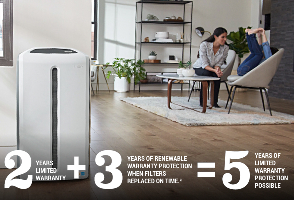- Comes with a 2-year limited warranty + 3 more additional years of limited warranty protection when filters are replaced on time = up to 5 years
